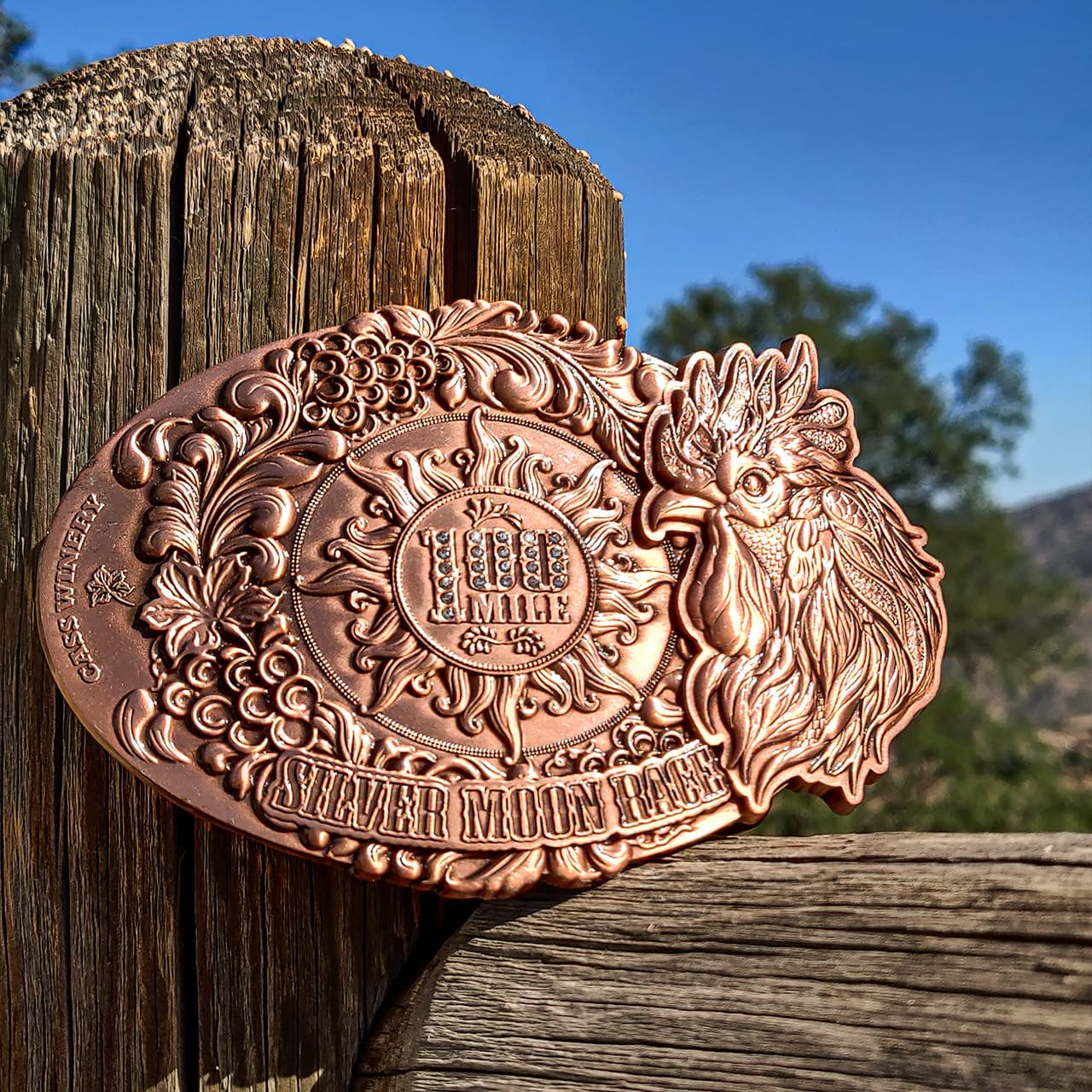 A special buckle for those looking to do a 100-mile challenge and earn the beautiful Silver Moon Race Rooster buckle. Must complete 100-miles to earn this.